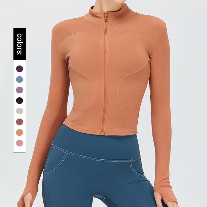 The long sleeves not only provide extra warmth but also come with thoughtful thumbholes, ensuring a snug fit at the cuffs and delivering a more comfortable wearing experience. This jacket is not just a piece of activewear; it is a perfect blend of style and practicality. Whether you're focused on yoga practice in the studio or enjoying leisurely daily activities, it showcases your unique sense of fashion. Overall, this yoga jacket not only prioritizes aesthetics but also emphasizes the convenience and comfort of wearing, creating a perfect blend of sporty and casual style for you.